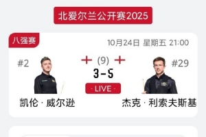 体育资讯10月25日讯 2025斯诺克北爱尔兰公开赛1/4决赛,杰克-利索夫斯基5-3战胜凯伦·-威尔逊,晋级四强。