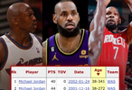 据统计,杜兰特加入了詹姆斯(3次)和乔丹(2次)的行列,成为NBA历史上仅有的三位在37岁或以上年龄单场比赛得到至少37分且没有失误的球员之一。