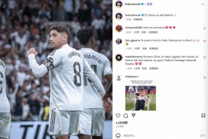他也在赛后通过社媒晒出自己的振臂庆祝照,并配文:“国家德比属于马德里!”