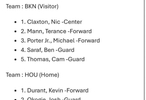 火箭首发:阿门、奥科吉、杜兰特、小贾和申京。