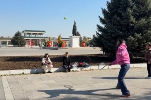 体育资讯10月29日讯 前美网女单冠军,华裔网球选手拉杜卡努近日回到沈阳探亲,并与沈阳大妈在公园一起打起了网球。