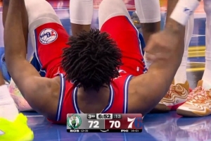 GIF-怀特对恩比德犯规,随后被换下