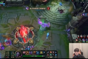 团灭对手后JackeyLove放大看蒙多R技能特效,随后进泉水洗澡