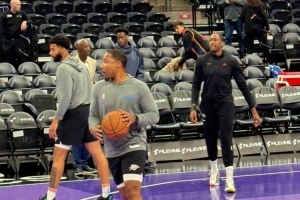本场比赛,2026年状元大热AJ·迪班萨(他效力的杨百翰大学位于犹他州)现身球场观战,还与杰伦·威廉姆斯畅聊。