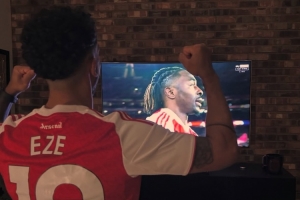 在社交媒体上,沃尔科特晒出看球照并写道:好一个帽子戏法!热烈祝贺埃泽在北伦敦德比中的精彩表现。