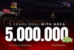 这份合同为期三年、总计500万欧元,NOVA的品牌将出现在球馆中央的大屏幕上,而该大屏幕也将更名为“NOVA CUBE”。