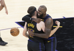 直播吧11月26日讯 NBA杯赛B组小组赛,湖人135-118击败快船。赛后詹姆斯接受了媒体采访。