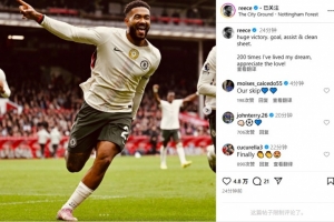 体育资讯10月18日讯 今天,切尔西在英超3-0击败诺丁汉森林,里斯-詹姆斯赛后在Instagram发文,庆祝个人蓝军生涯200场里程碑。